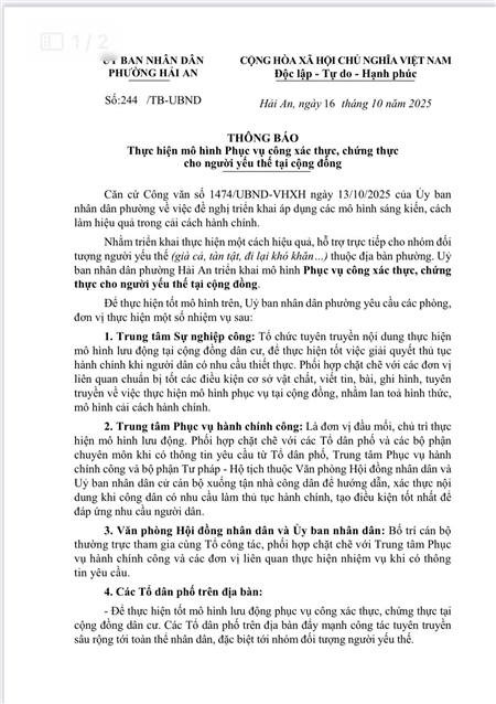 Phường Hải An triển khai mô hình “Phục vụ công xác thực, chứng thực cho người yếu thế tại cộng đồng”
