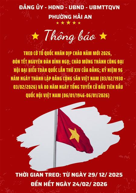 PHƯỜNG HẢI AN THÔNG BÁO VỀ VIỆC TREO CỜ TỔ QUỐC