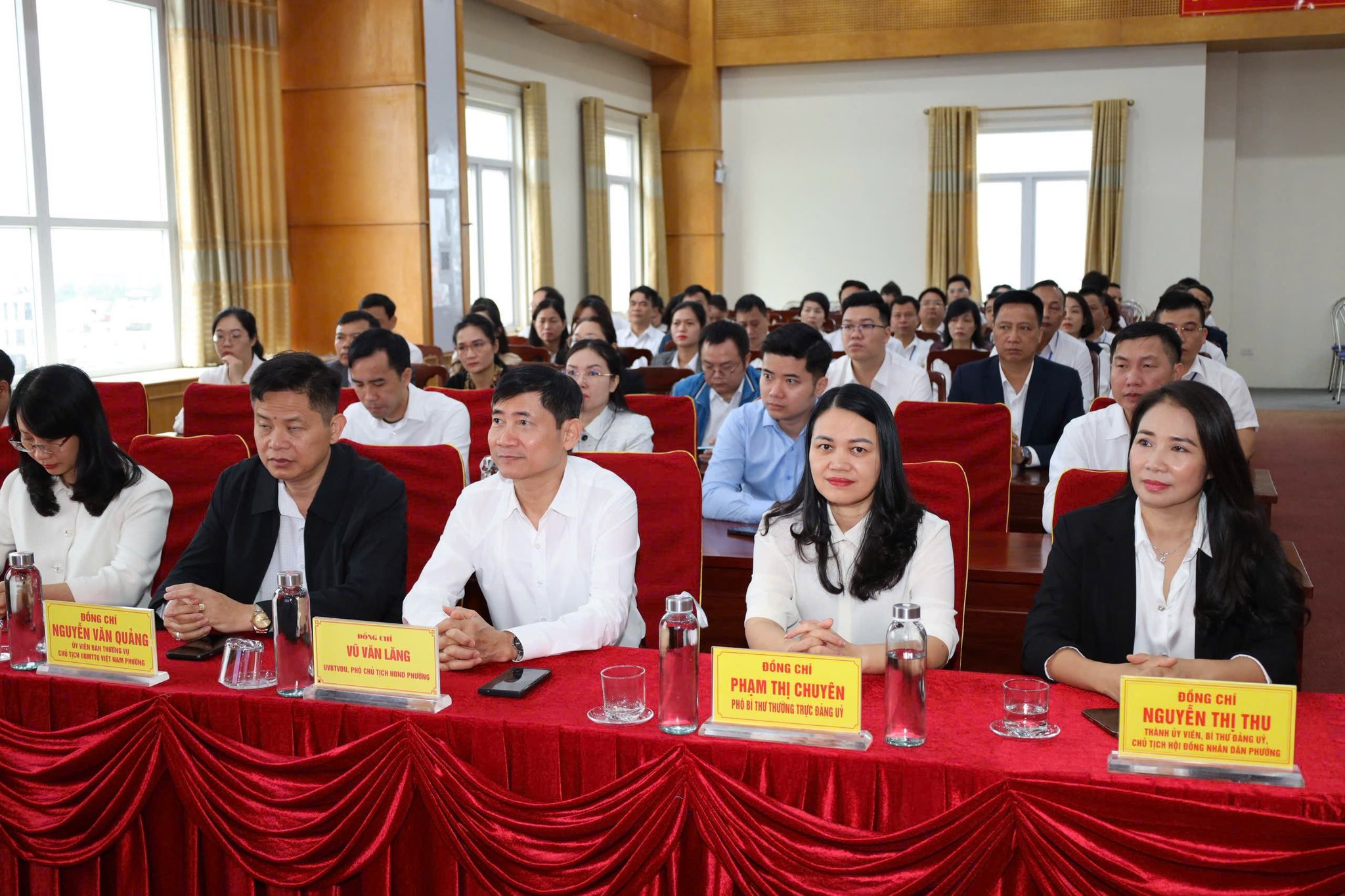 Tham dự có đồng chí Nguyễn Thị Thu - Uỷ viên Thành uỷ, Bí thư Đảng ủy, Chủ tịch HĐND phường; đồng chí Phạm Thị Chuyên - Phó Bí thư Thường trực Đảng uỷ; đồng chí Cao Huy Hiếu - Phó Bí thư Đảng ủy, Chủ tịch UBND phường; các đồng chí lãnh đạo HĐND, UBND, UBMTTQVN phường; cùng toàn thể cán bộ, công chức, viên chức, người lao động đang công tác tại các cơ quan, đơn vị của phường.
