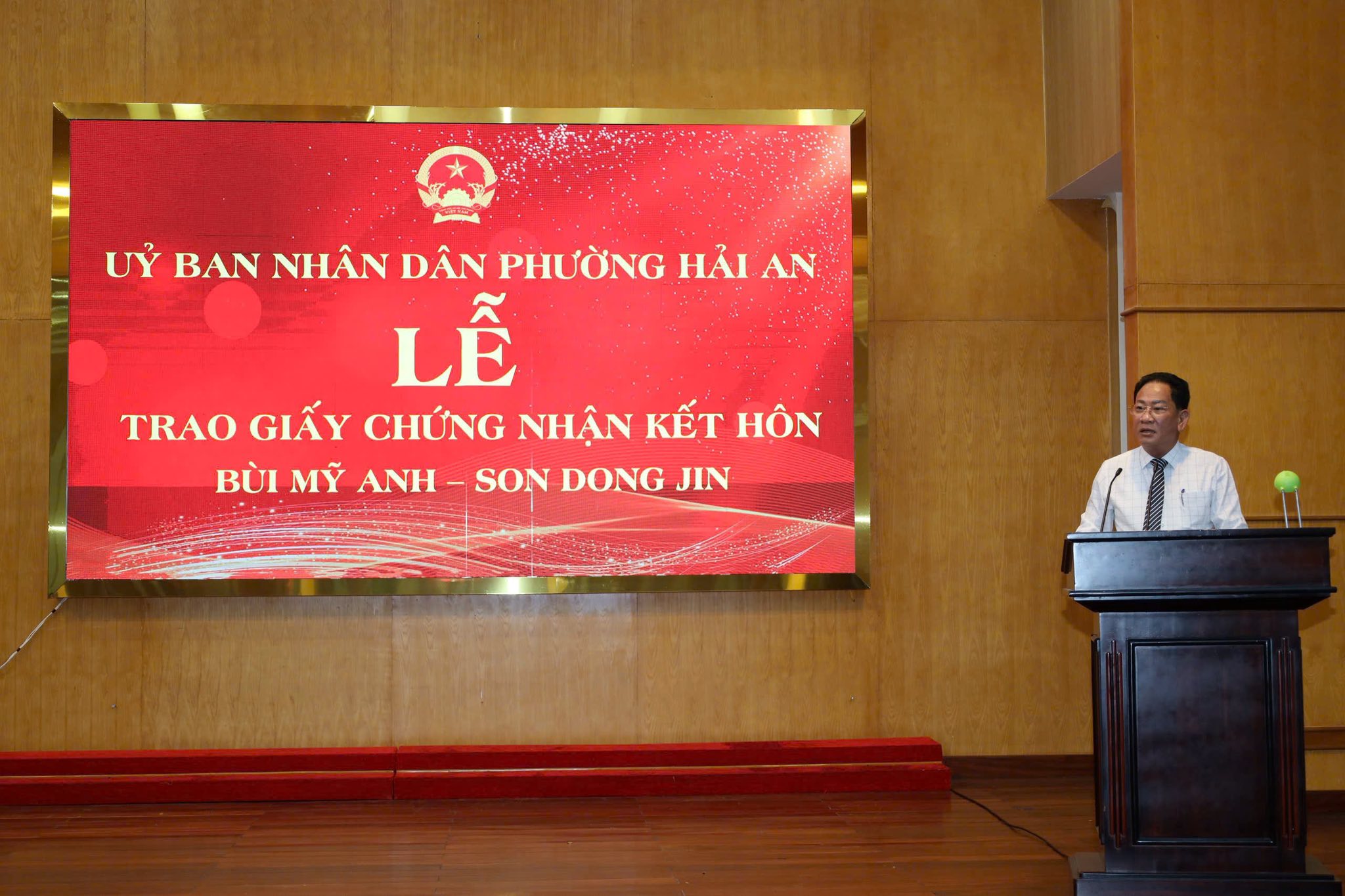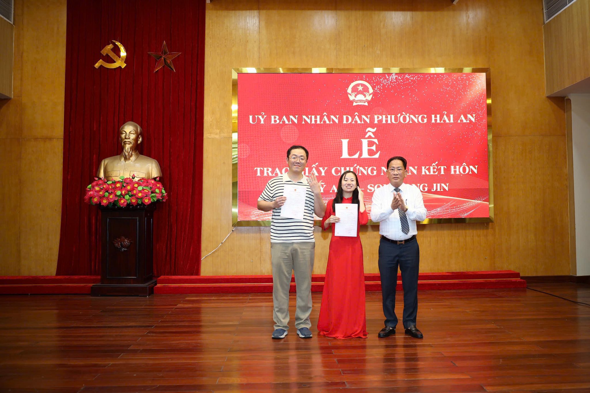 Chiều ngày 01/10/2025, Uỷ ban nhân dân phường Hải An tổ chức Lễ Trao giấy chứng nhận kết hôn cho chị Bùi Mỹ Anh; thường trú tại phường Hải An và anh Son Dong Jin, quốc tịch Hàn Quốc.