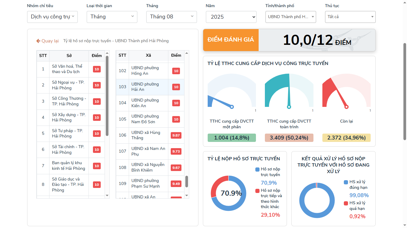 Tỷ lệ Hồ Sơ trực tuyến tháng 8/2025 - UBND phường Hải An