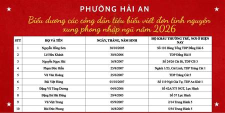PHƯỜNG HẢI AN BIỂU DƯƠNG THÊM NHIỀU CÔNG DÂN TỰ NGUYỆN VIẾT ĐƠN XUNG PHONG NHẬP NGŨ NĂM 2026