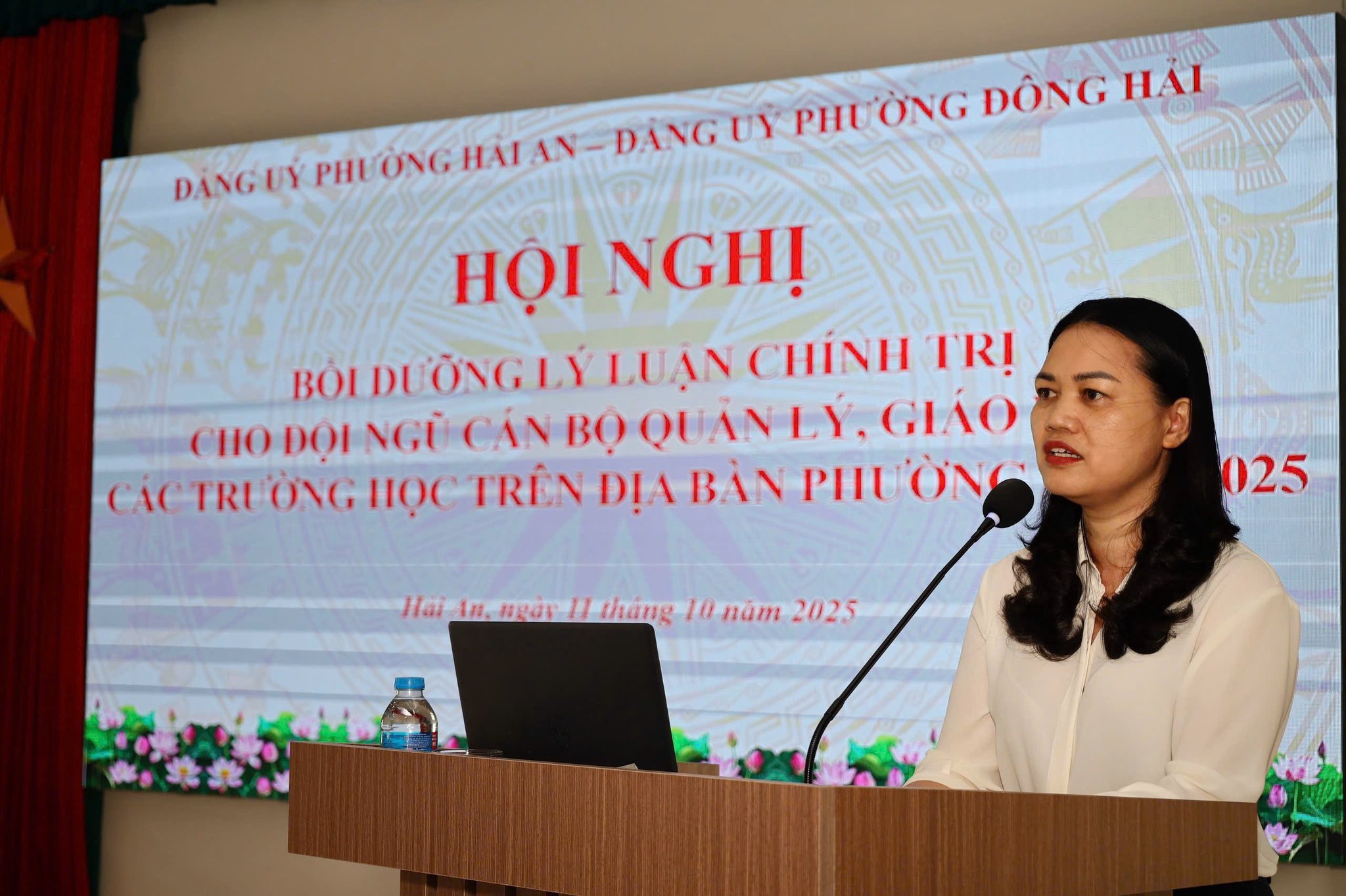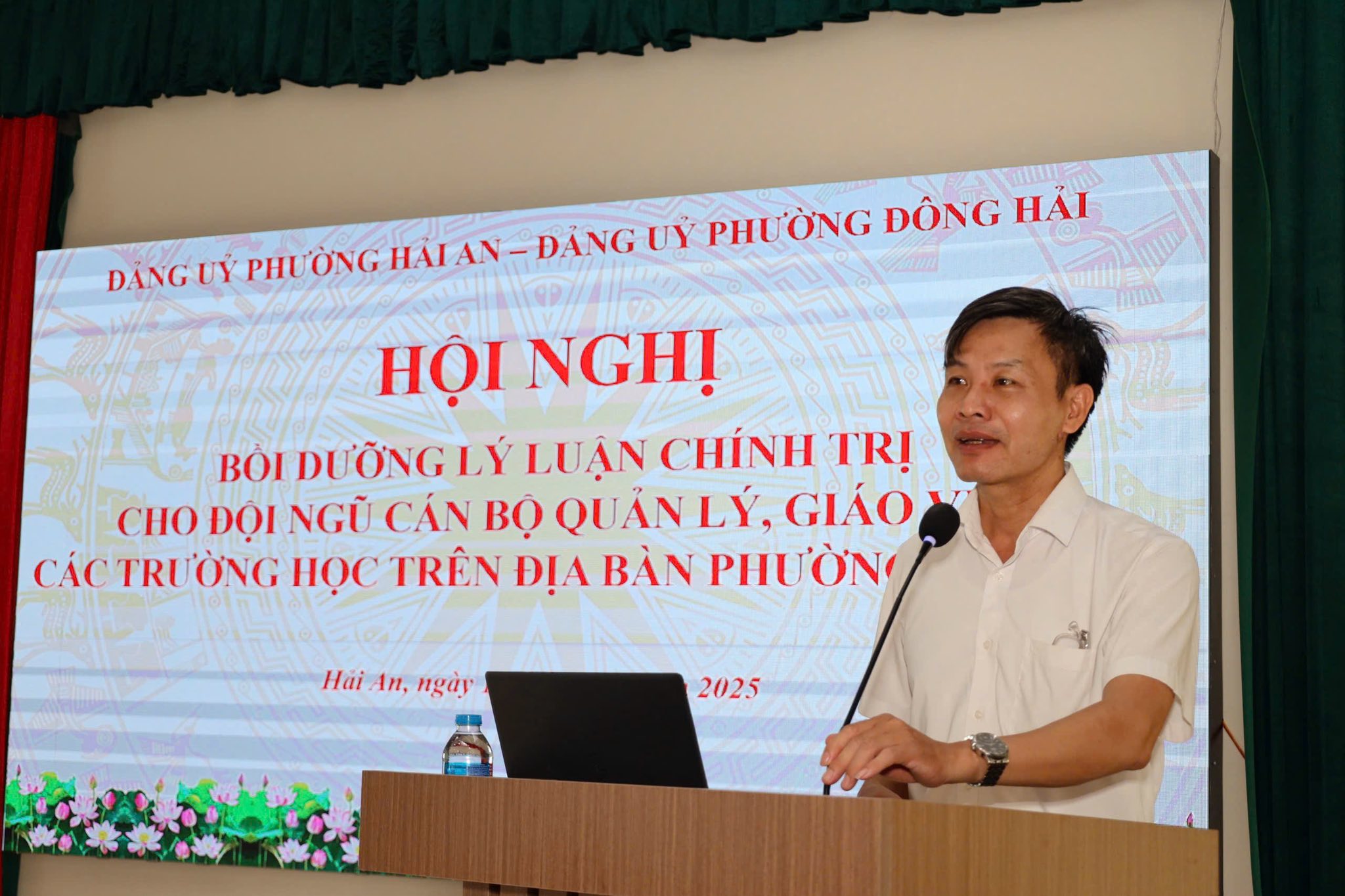 Phát biểu khai mạc Lớp bồi dưỡng, đồng chí Phạm Thị Chuyên - Phó Bí thư Thường trực Đảng ủy phường Hải An nhấn mạnh: tập huấn, bồi dưỡng lý luận chính trị cho cán bộ quản lý và giáo viên các trường học là nhiệm vụ thường xuyên, góp phần nâng cao nhận thức chính trị, cập nhật kiến thức mới về đường lối, chính sách của Đảng và tình hình đất nước, địa phương. Qua đó, cán bộ, giáo viên nâng cao bản lĩnh chính trị, đạo đức nghề nghiệp, đổi mới phương pháp quản lý và giảng dạy, góp phần hoàn thành tốt nhiệm vụ năm học. Đồng thời, góp phần xây dựng Đảng bộ phường Hải An trong sạch vững mạnh và thực hiện thắng lợi các mục tiêu phát triển kinh tế - xã hội của địa phương.
