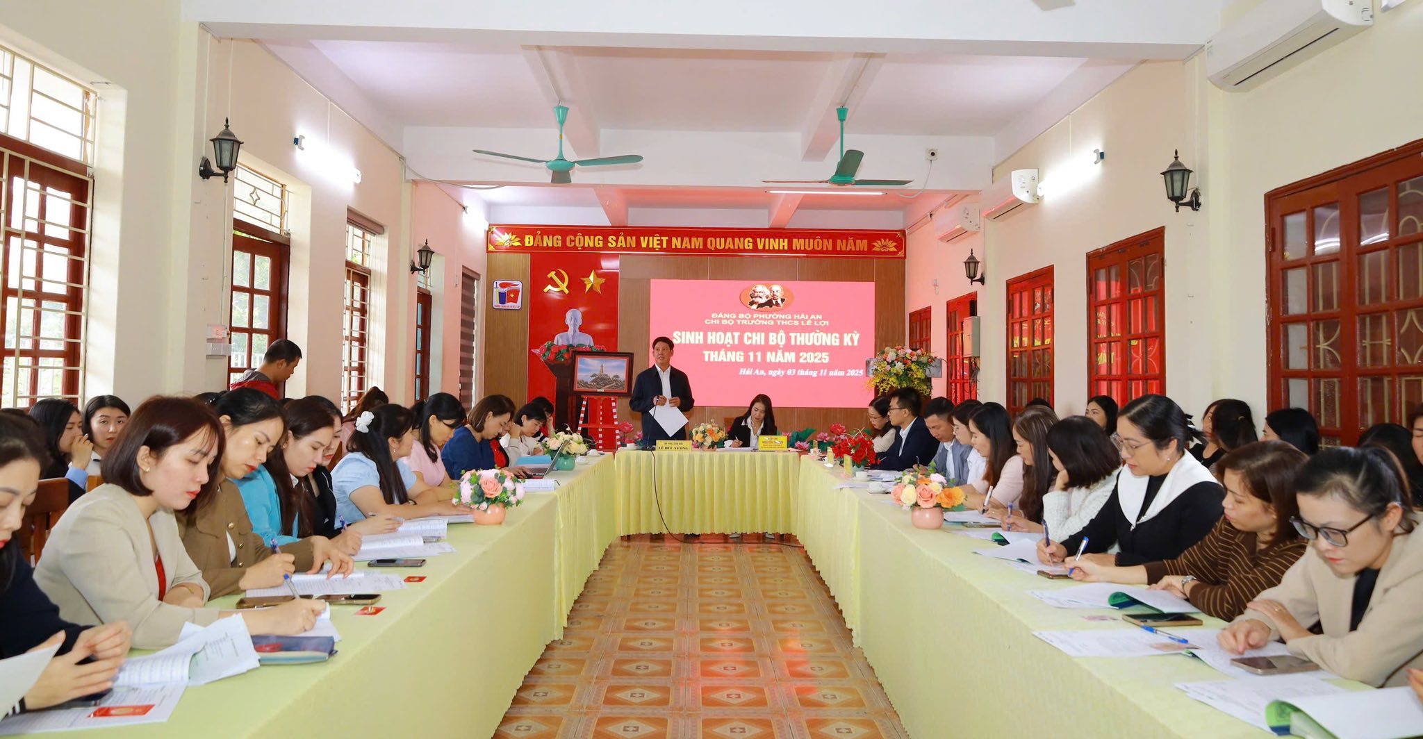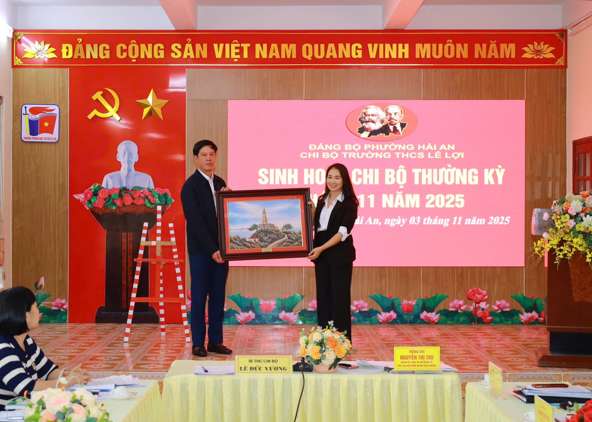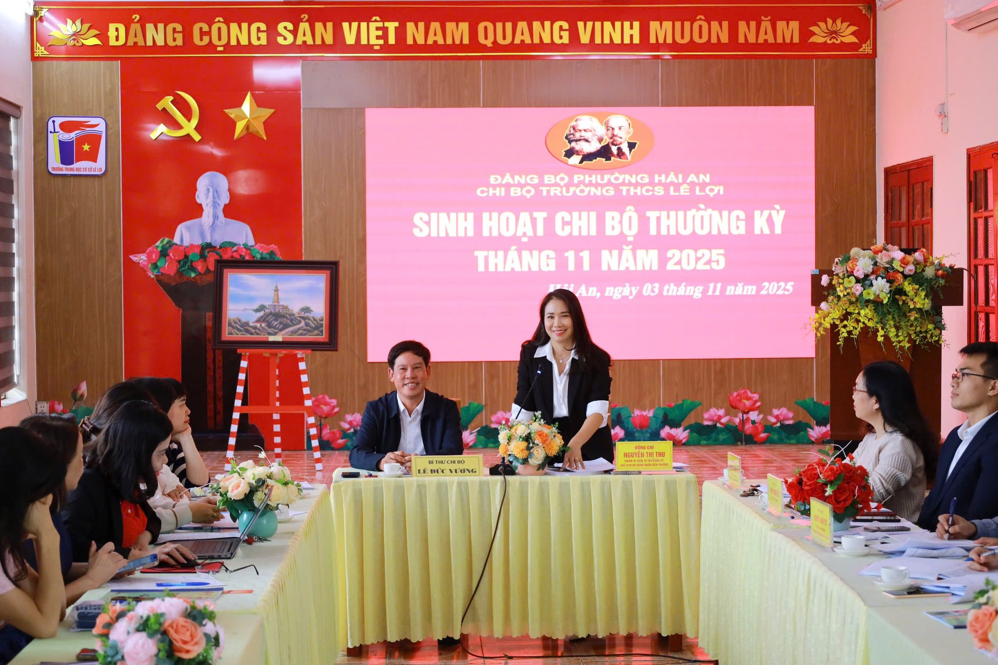 Sáng ngày 03/11/2025, Chi bộ Trường THCS Lê Lợi (phường Hải An) tổ chức sinh hoạt chi bộ thường kỳ tháng 11/2025. Tới dự và chỉ đạo có đồng chí Nguyễn Thị Thu - Uỷ viên Thành uỷ, Bí thư Đảng uỷ, Chủ tịch HĐND phường; cùng dự có đại diện lãnh đạo các phòng, ban, đơn vị liên quan và 76 đảng viên trong chi bộ.
