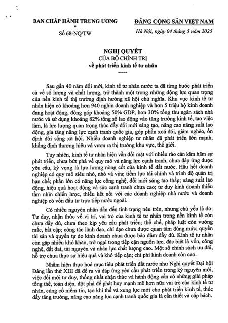 TOÀN VĂN: Nghị quyết số 68-NQ/TW về phát triển kinh tế tư nhân