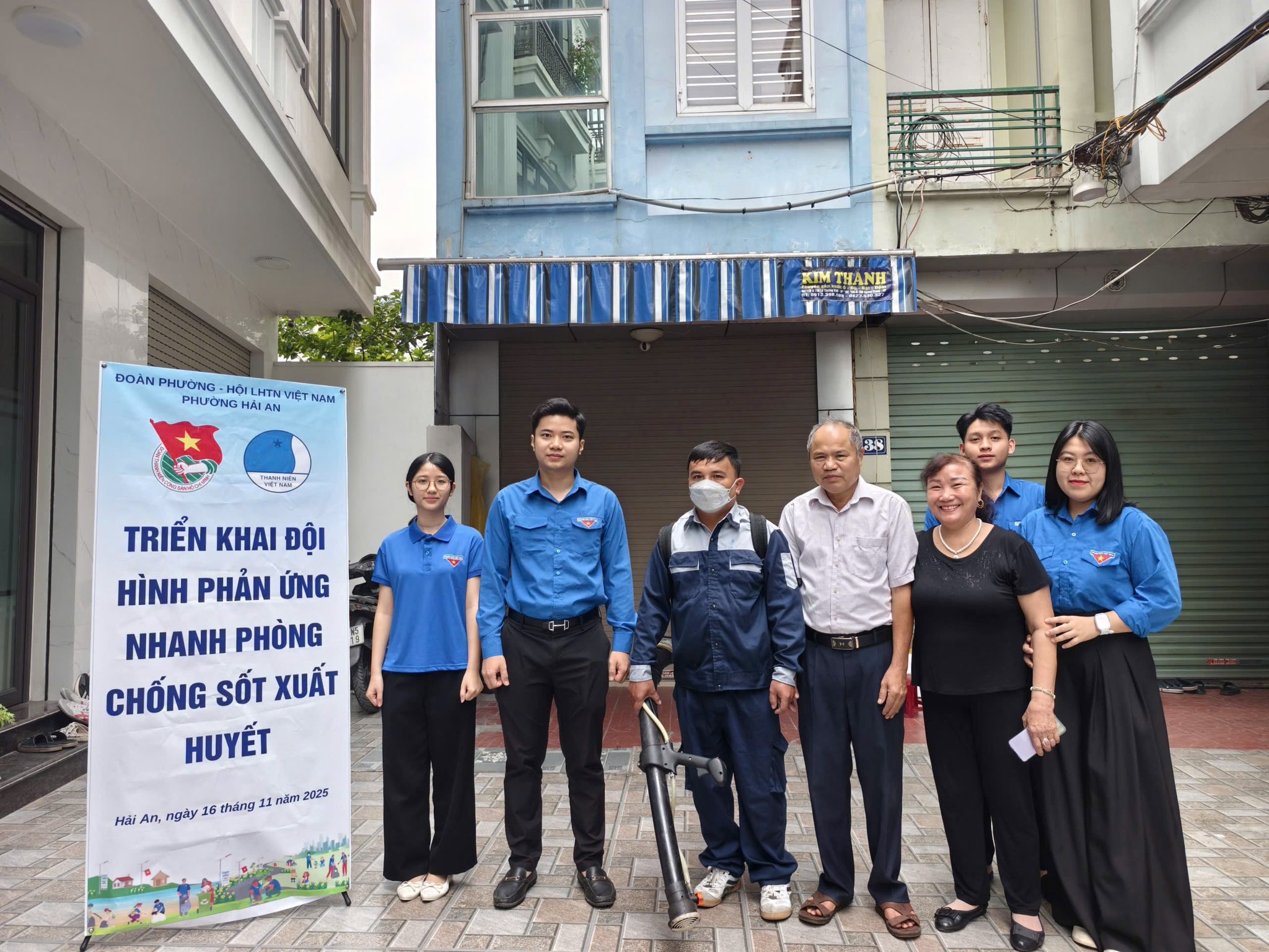 Hưởng ứng chuỗi hoạt động chào mừng Ngày hội Đại đoàn kết toàn dân tộc năm 2025 và kỷ niệm 95 năm Ngày truyền thống Mặt trận Tổ quốc Việt Nam, Đoàn phường – Hội LHTN Việt Nam phường Hải An đã triển khai mô hình “Đội phản ứng nhanh diệt muỗi, diệt loăng quăng” kết hợp ra quân Chiến dịch “Thanh niên hành động – Làm sạch đô thị” năm 2025 tại các cơ sở Đoàn trực thuộc.