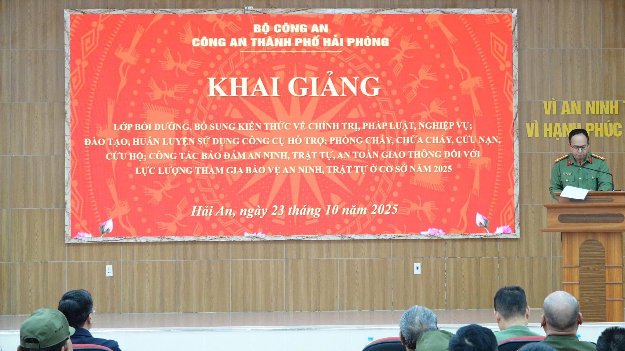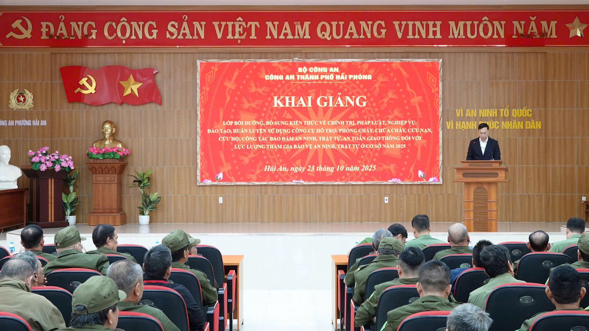 Sáng ngày 23/10/2025, Công an các phường Hải An, Đông Hải và An Biên phối hợp tổ chức lớp bồi dưỡng, bổ sung kiến thức về chính trị, pháp luật, nghiệp vụ; đào tạo, huấn luyện sử dụng công cụ hỗ trợ; phòng cháy, chữa cháy, cứu nạn, cứu hộ; công tác bảo đảm an ninh, trật tự, an toàn giao thông đối với lực lượng tham gia bảo vệ an ninh, trật tự ở cơ sở năm 2025.