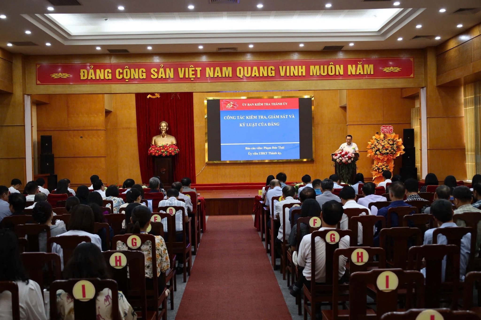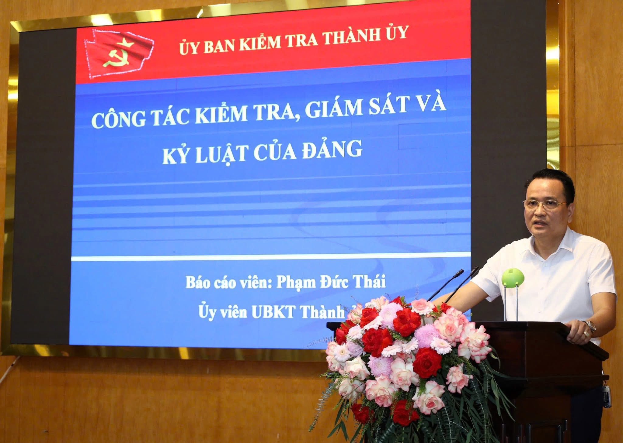 Tại hội nghị, các đại biểu đã nghe đồng chí Phạm Đức Thái – Ủy viên UBKT Thành ủy, Báo cáo viên Thành ủy triển khai những nội dung mới về công tác kiểm tra, giám sát và thi hành kỷ luật của Đảng, tập trung vào các điểm đổi mới trong quy trình, phương pháp thực hiện, cũng như kinh nghiệm xử lý một số tình huống thực tiễn tại cơ sở.