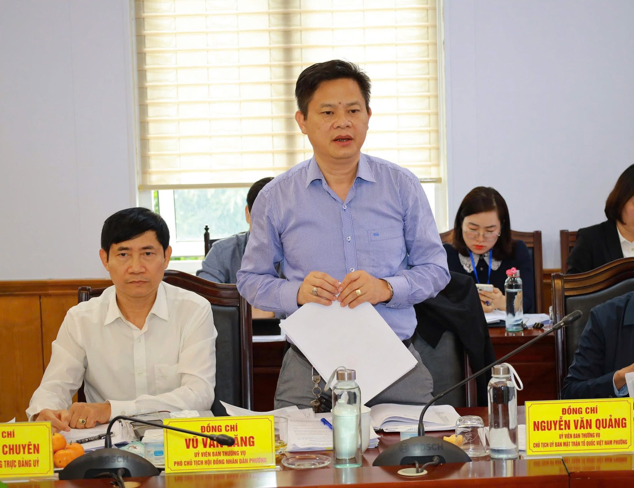 Đồng chí Nguyễn Thị Thu - TUV, Bí thư Đảng uỷ, Chủ tịch HĐND phường chủ trì hội nghị; cùng dự có đồng chí Phạm Thị Chuyên - Phó Bí thư Thường trực Đảng uỷ, đồng chí Cao Huy Hiếu - Phó Bí thư Đảng uỷ, Chủ tịch UBND phường; các đồng chí Uỷ viên BTV, Phó Chủ tịch UBND phường và đại diện lãnh đạo các phòng, ban, đơn vị chuyên môn.