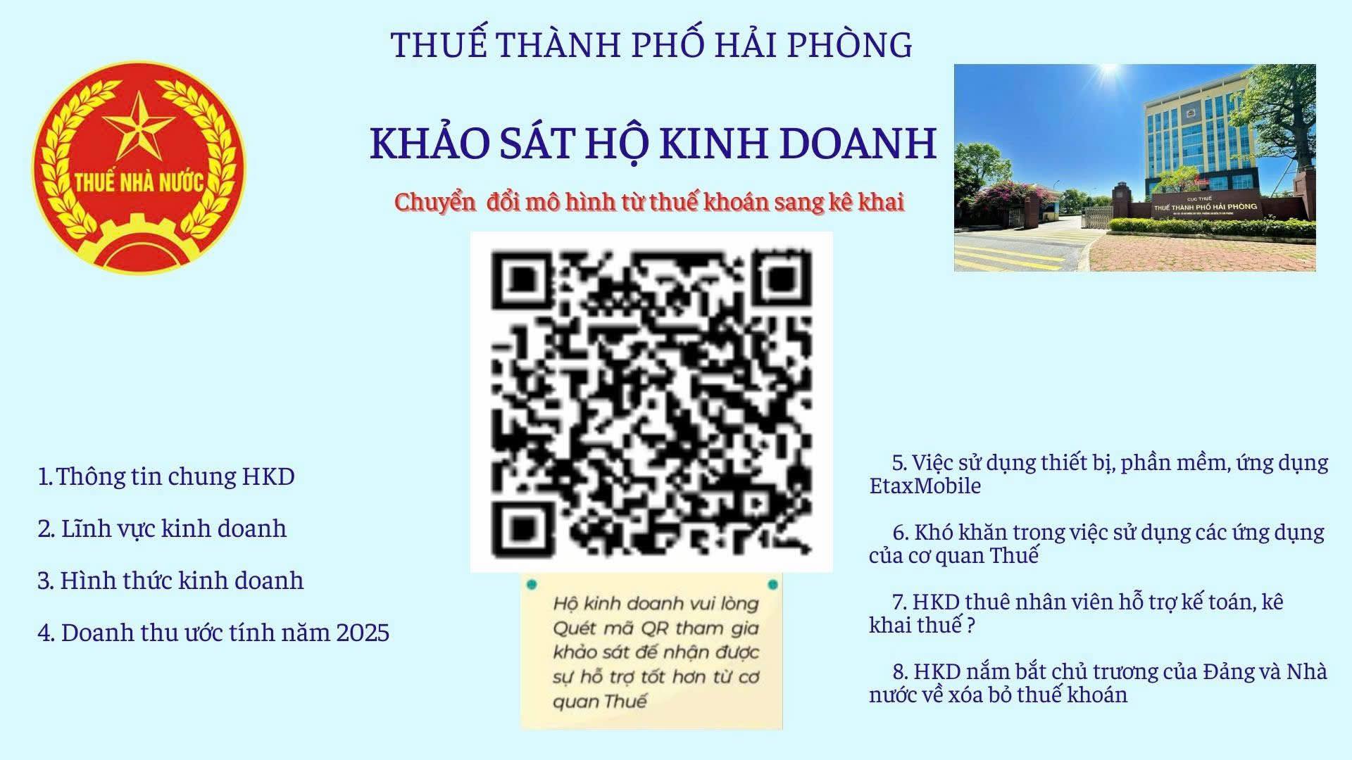Kính mời Quý Hộ kinh doanh quét mã Qr code tham gia khảo sát về việc "Chuyển đổi mô hình từ thuế khoán sang kê khai" để nhận được sự hỗ trợ tốt hơn từ cơ quan Thuế