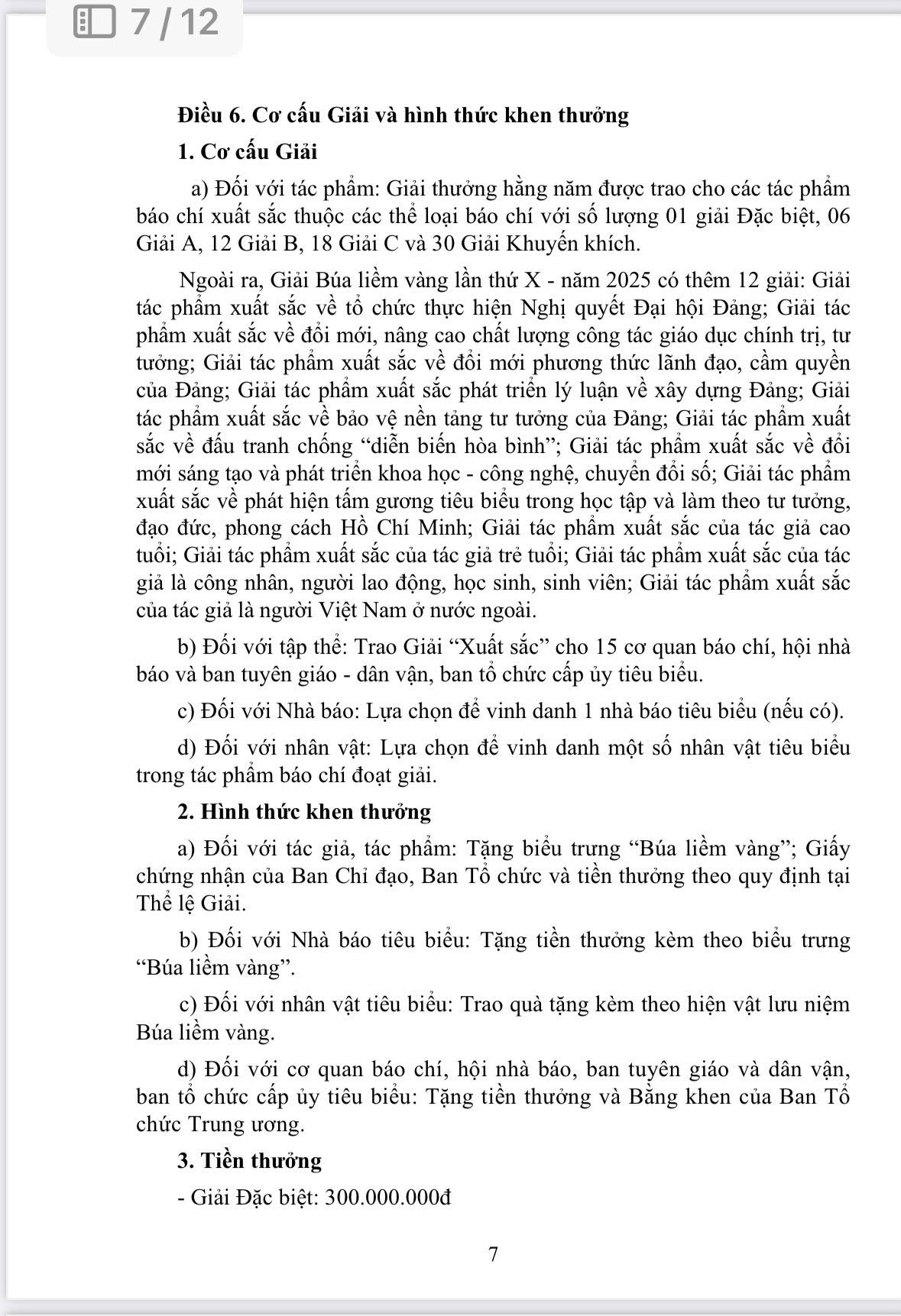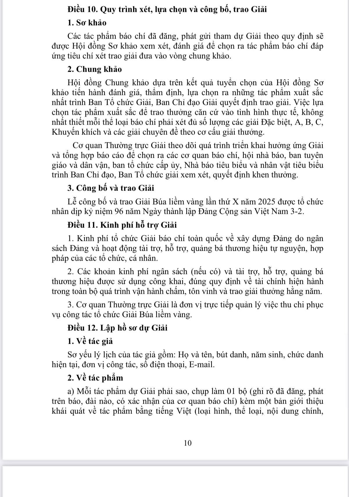 Thời gian nhận tác phẩm: Hồ sơ tham dự giải có thể nộp trực tiếp hoặc gửi về cơ quan thường trực Giải chậm nhất vào ngày 10/11/2025 (theo dấu bưu điện).