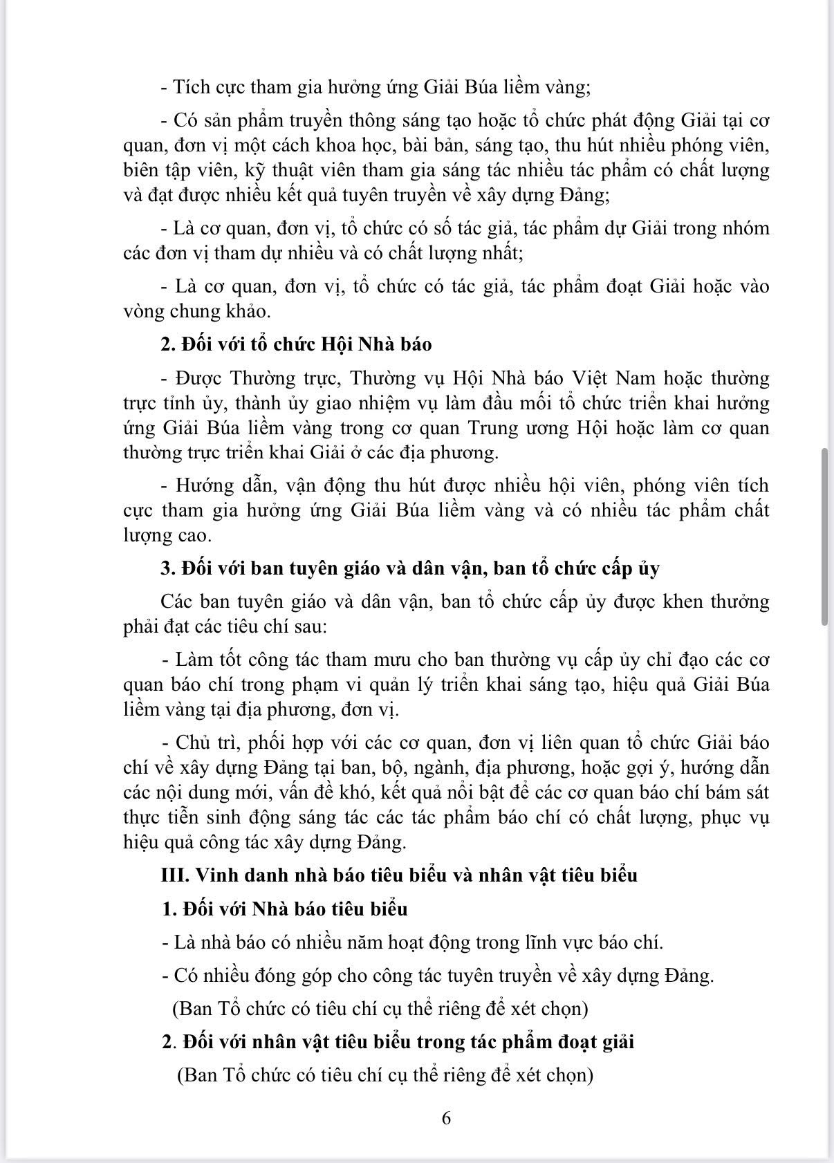 Khuyến khích đội ngũ phóng viên, cộng tác viên, tuyên truyền viên sáng tạo nhiều tác phẩm báo chí có nội dung thiết thực, phản ánh sinh động công tác xây dựng Đảng và hệ thống chính trị ở cơ sở.