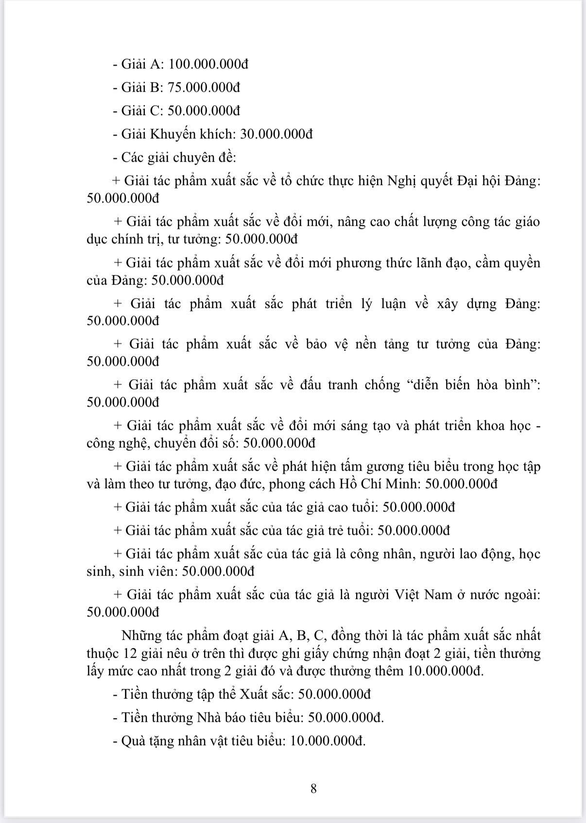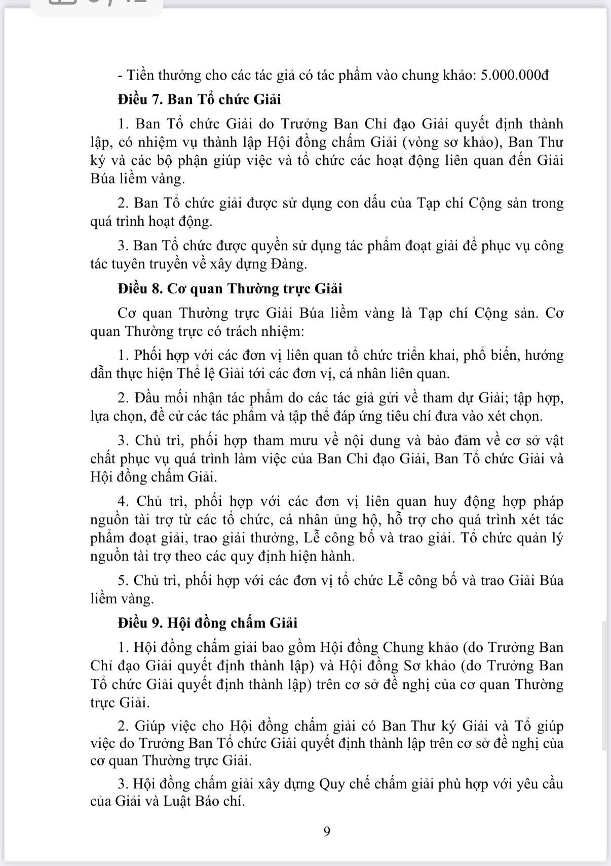 Địa chỉ nhận tác phẩm: Tạp chí Cộng sản số 28 Trần Bình Trọng, Phường Nguyễn Du, Thành phố Hà Nội.