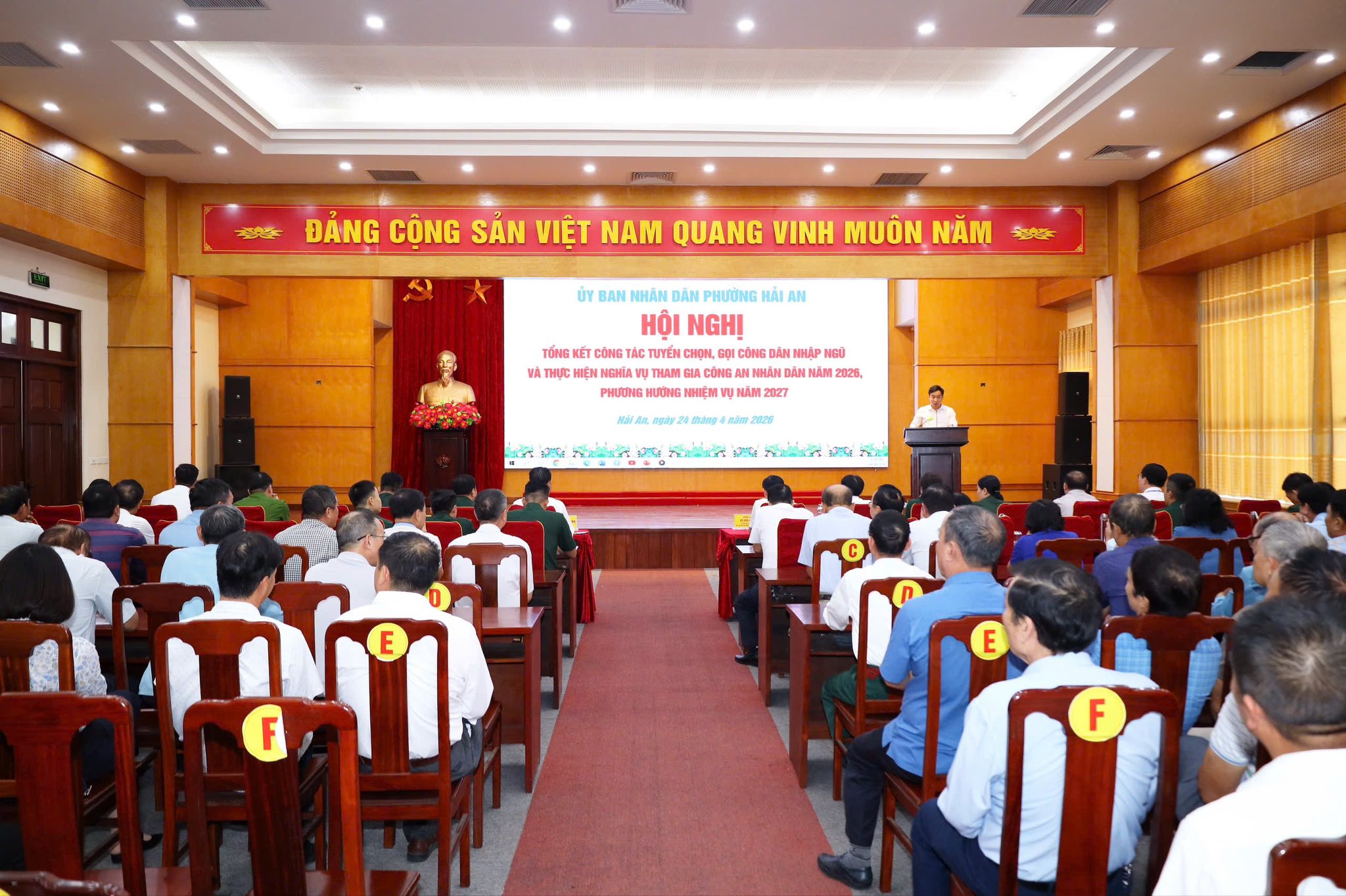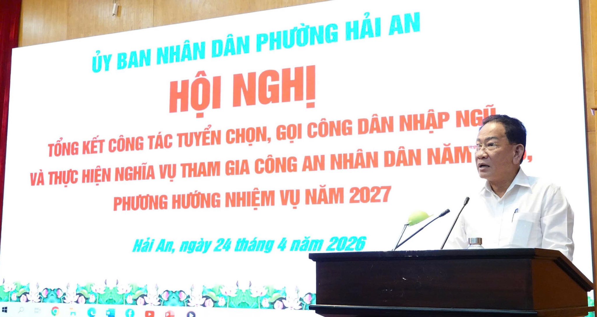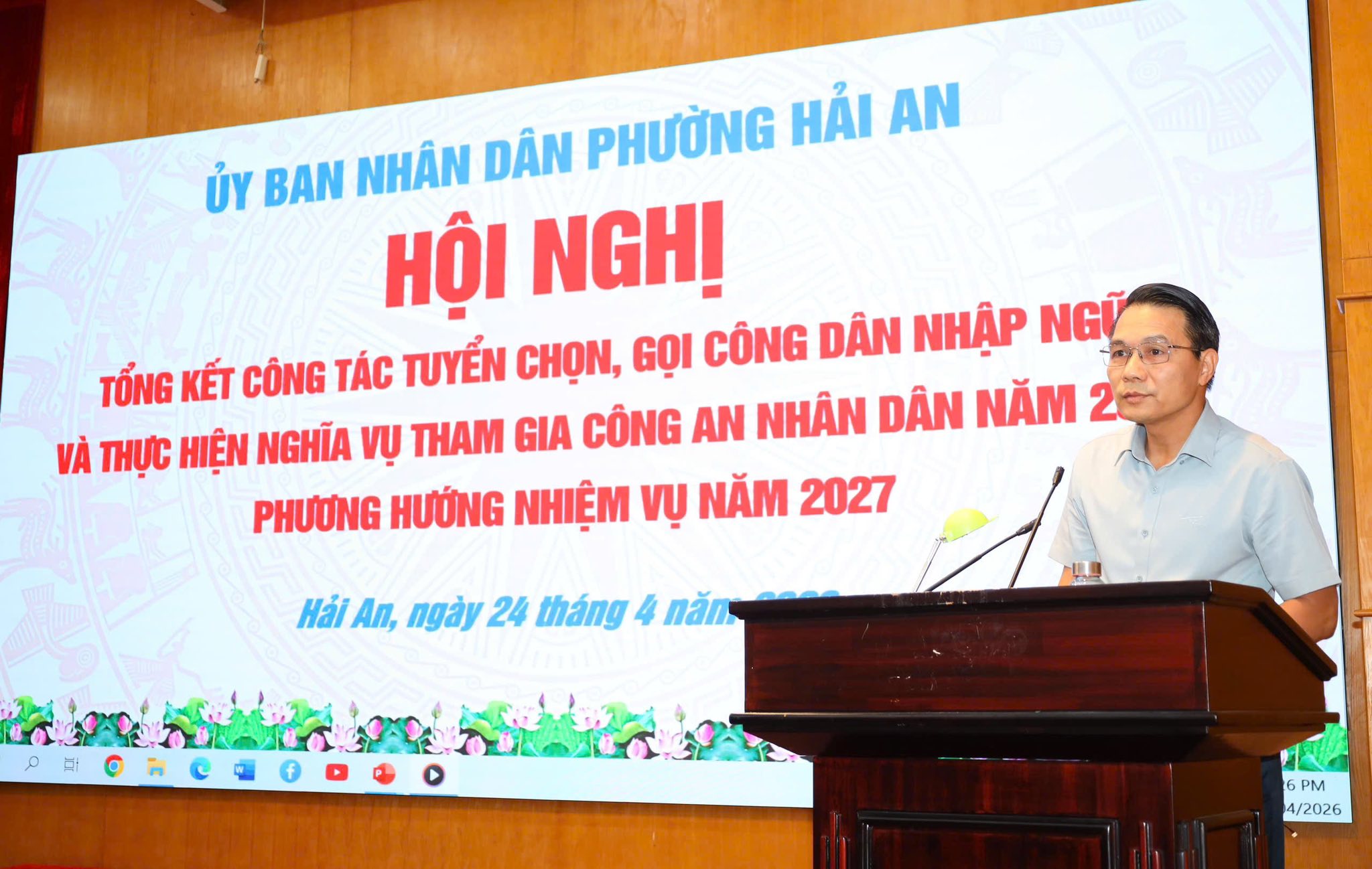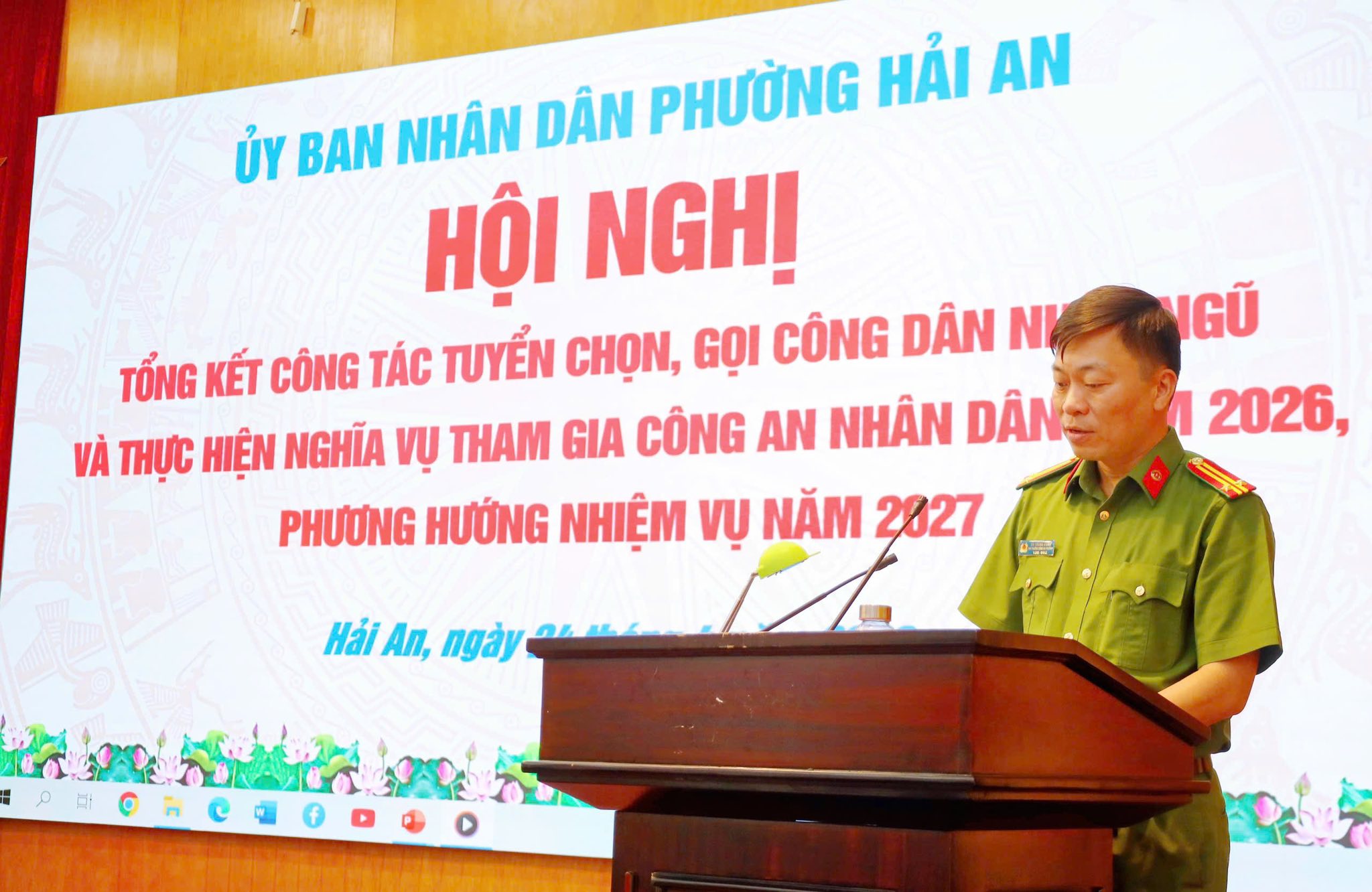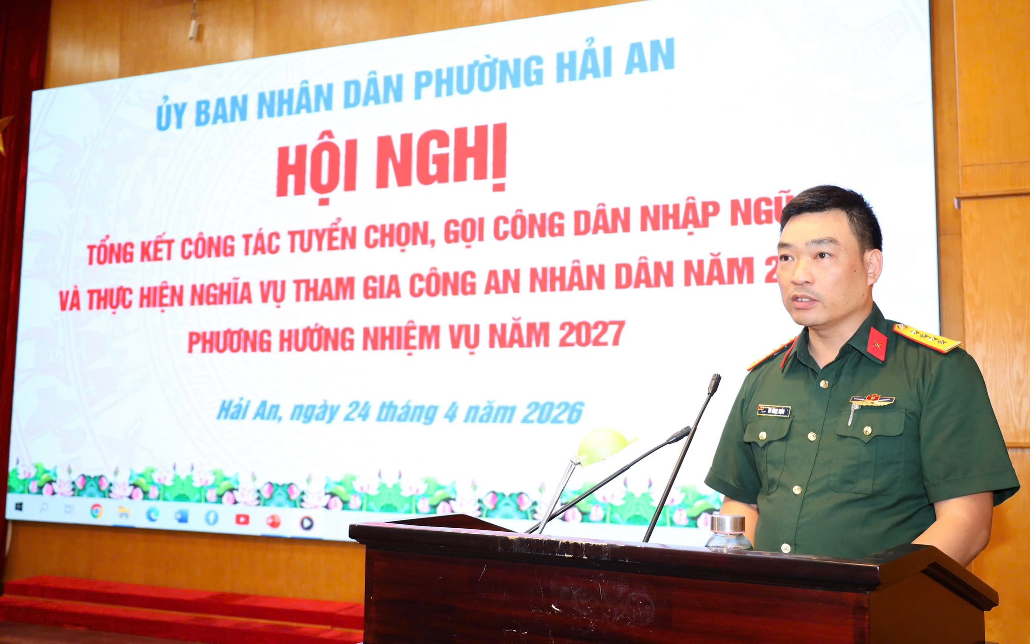 Chiều 24/4, UBND phường Hải An tổ chức Hội nghị tổng kết công tác tuyển chọn, gọi công dân nhập ngũ và thực hiện nghĩa vụ tham gia Công an nhân dân năm 2026; triển khai phương hướng nhiệm vụ năm 2027.