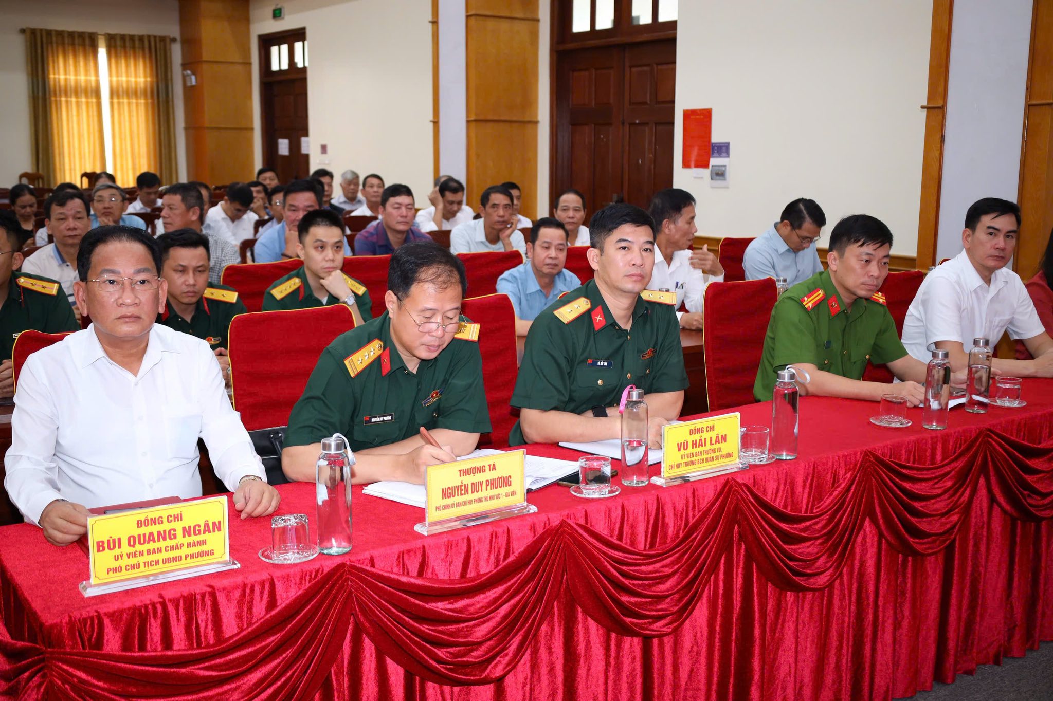 Dự Hội nghị có đồng chí Thượng tá Nguyễn Duy Phương - Phó Chính uỷ Ban Chỉ huy phòng thủ khu vực 1 Gia Viên, các đồng chí UVBTV Đảng uỷ phường, các đồng chí Phó Chủ tịch HĐND - UBND, Công an phường, Ban CHQS phường, Trung tâm Y tế Hải An; thành viên Hội đồng Nghĩa vụ quân sự phường; các đồng chí Cảnh sát khu vực, Bí thư Chi bộ, Tổ trưởng 55 tổ dân phố.