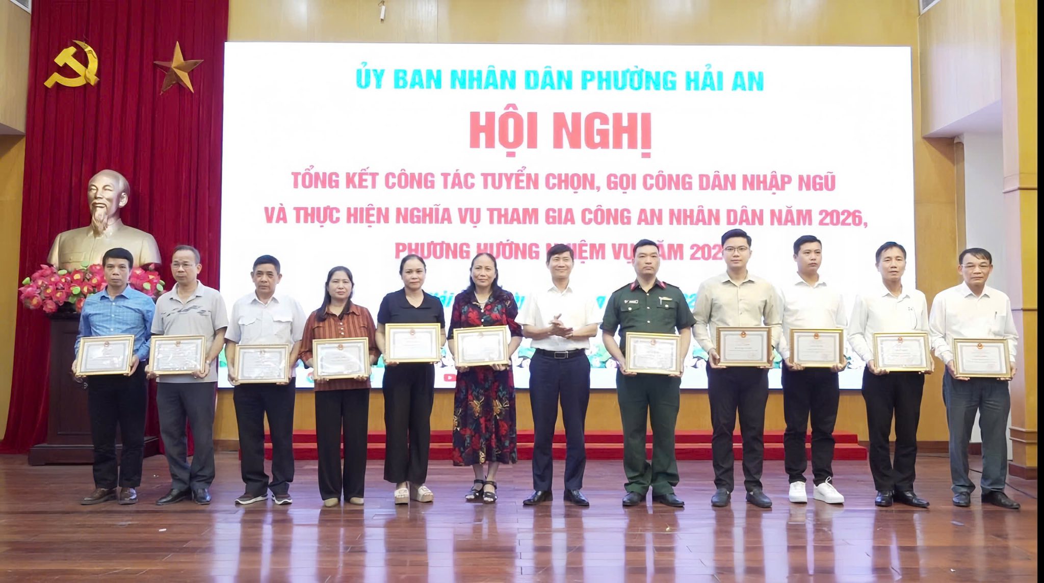 Nhân dịp này, UBND phường Hải An tặng Giấy khen cho 13 tập thể, 13 cá nhân có thành tích xuất sắc trong công tác tuyển gọi công dân nhập ngũ và tham gia nghĩa vụ Công an nhân dân năm 2026.