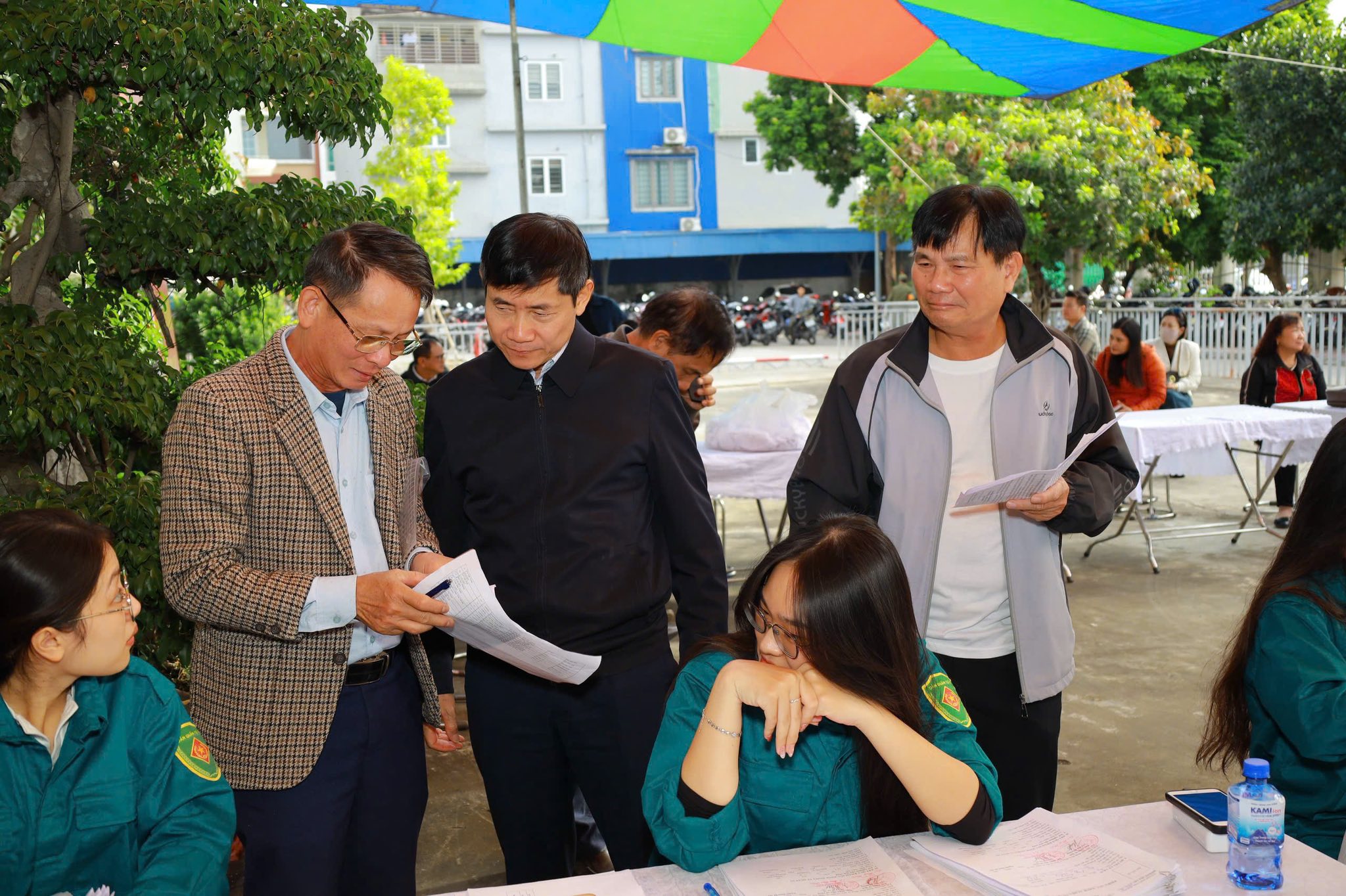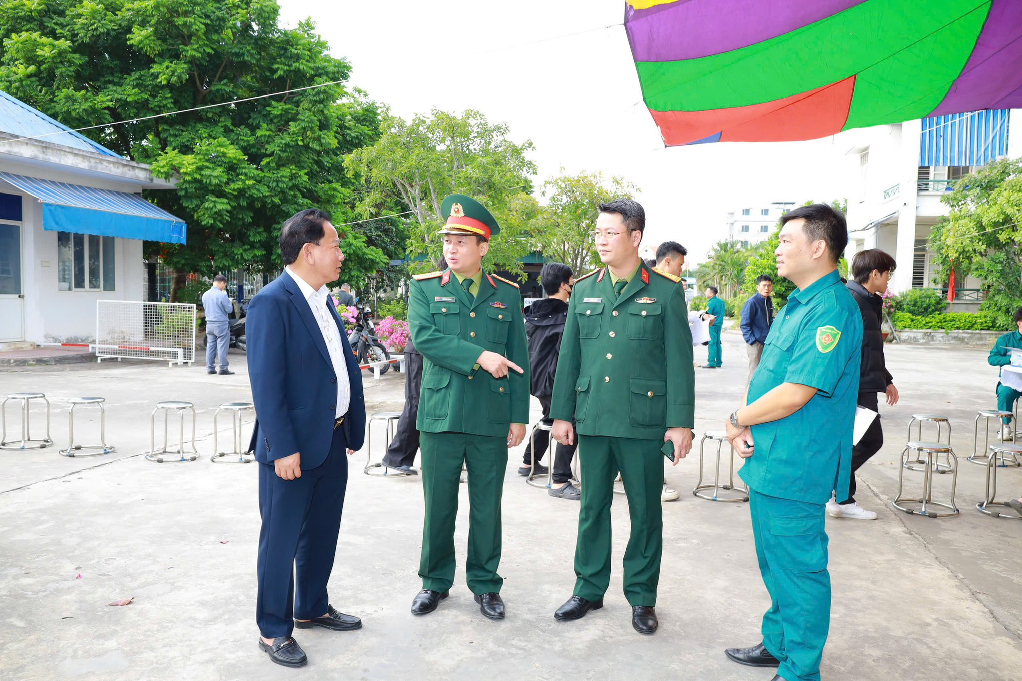 Tại điểm khám tuyển, các đồng chí lãnh đạo phường đã trực tiếp kiểm tra quá trình tổ chức khám tuyển, thể hiện sự quan tâm của cấp ủy, chính quyền đối với nhiệm vụ quốc phòng địa phương.
