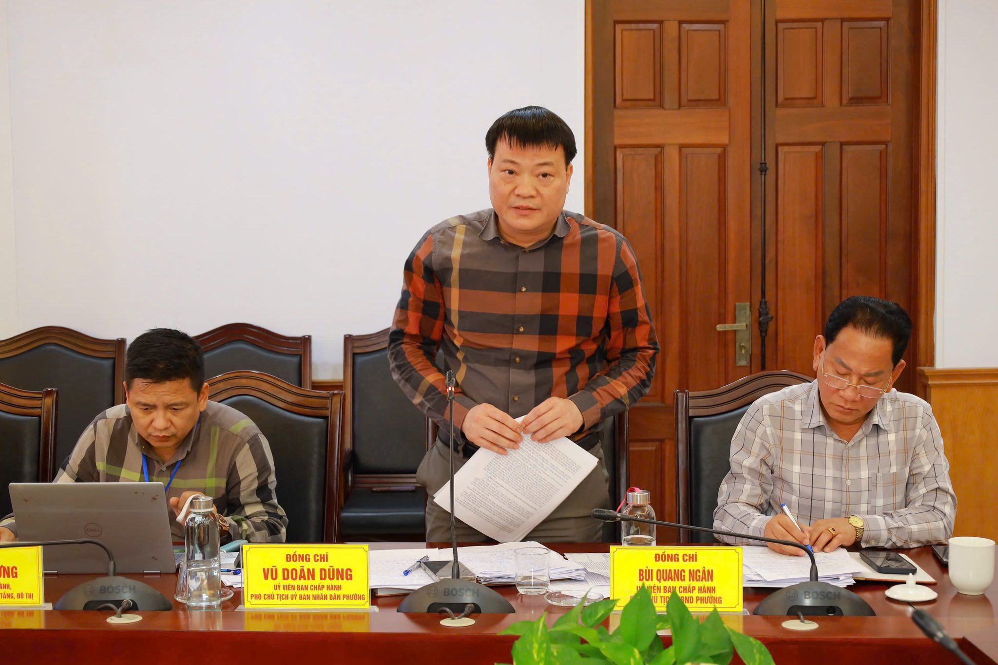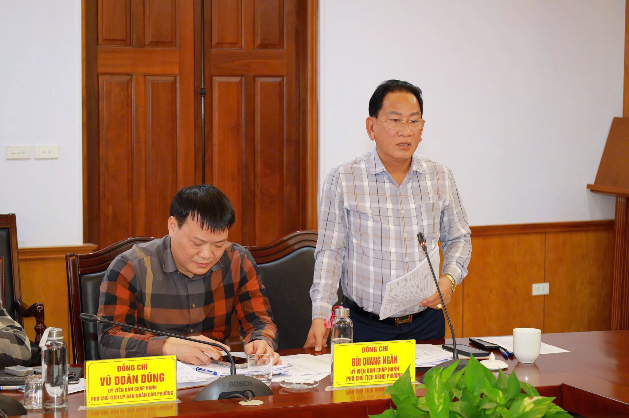 Đồng chí Cao Huy Hiếu - Phó Bí thư Đảng uỷ, Chủ tịch UBND phường chủ trì cuộc họp; cùng dự có đồng chí Nguyễn Văn Quảng - UVBTV, Chủ tịch UBMTTQVN phường; các đồng chí Phó Chủ tịch UBND; đại diện lãnh đạo các phòng, ban, đơn vị liên quan.