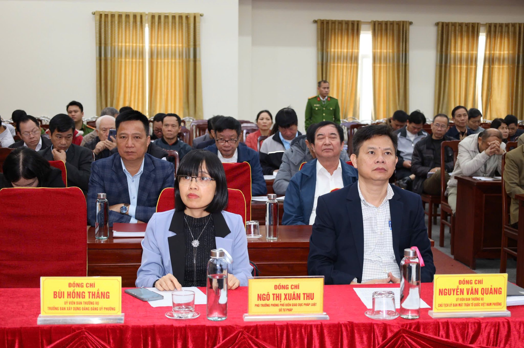 Tham dự Hội nghị có đồng chí Ngô Thị Xuân Thu – Phó Trưởng phòng Phổ biến giáo dục pháp luật, Sở Tư pháp; đồng chí Nguyễn Văn Quảng – UVBTV, Chủ tịch Ủy ban MTTQ Việt Nam phường; đồng chí Bùi Quang Ngân – Phó Chủ tịch UBND phường; đại diện lãnh đạo các phòng, ban, đơn vị; thành viên Hội đồng Nghĩa vụ quân sự; Bí thư, Tổ trưởng các tổ dân phố.