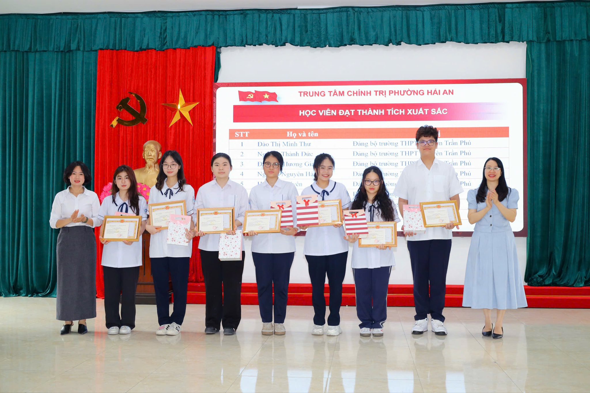 Tại Lễ Bế giảng, Trung tâm Chính trị phường Hải An đã biểu dương, khen thưởng 08 học viên có thành tích xuất sắc trong học tập và rèn luyện, đồng thời trao chứng nhận hoàn thành khóa học cho các học viên.