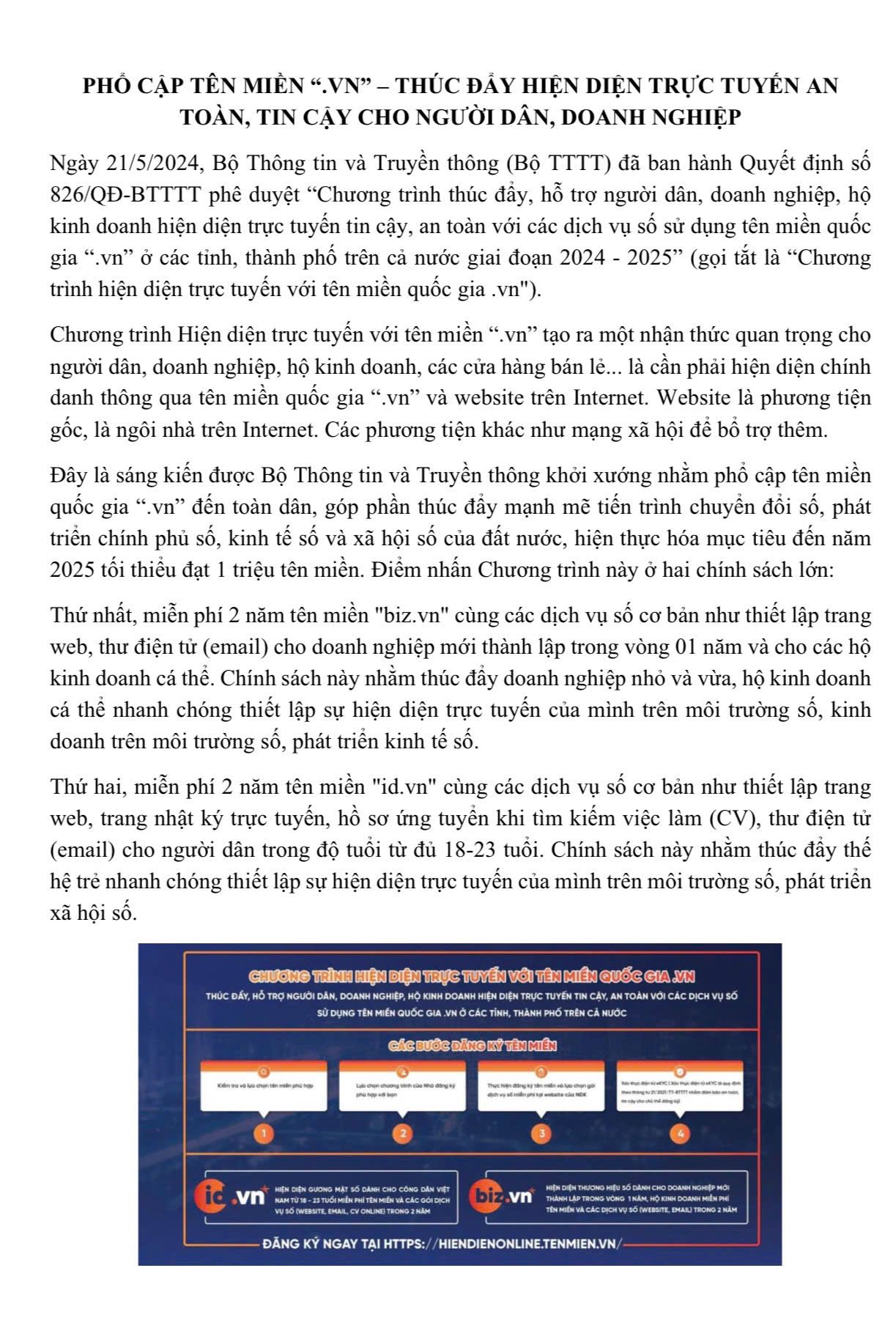 PHỔ CẬP TÊN MIỀN “.VN” – THÚC ĐẨY HIỆN DIỆN TRỰC TUYẾN AN TOÀN, TIN CẬY CHO NGƯỜI DÂN, DOANH NGHIỆP