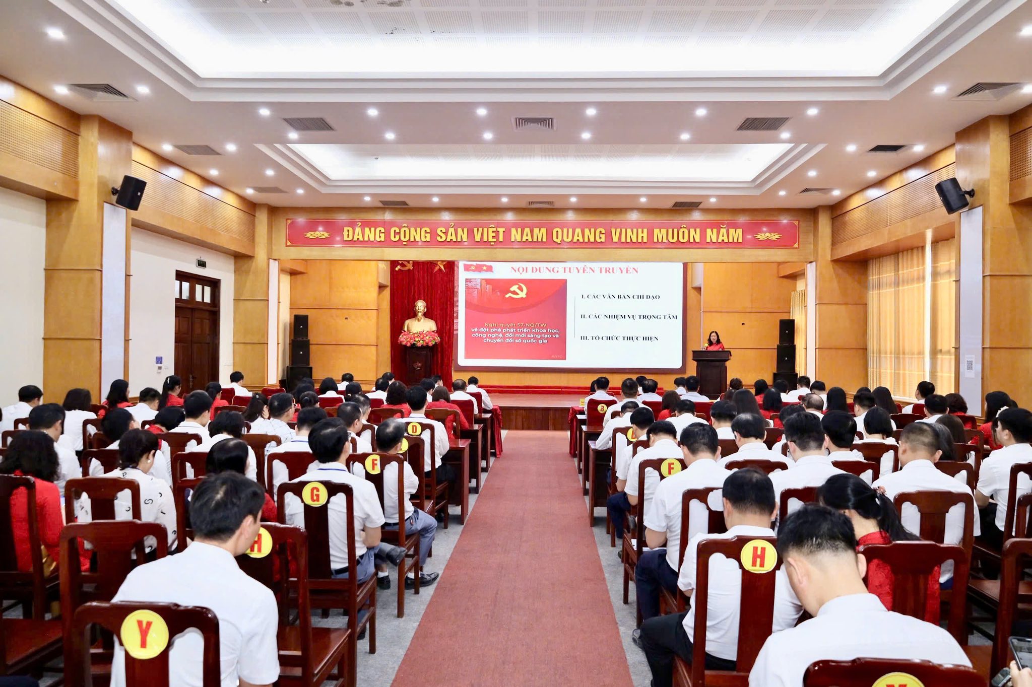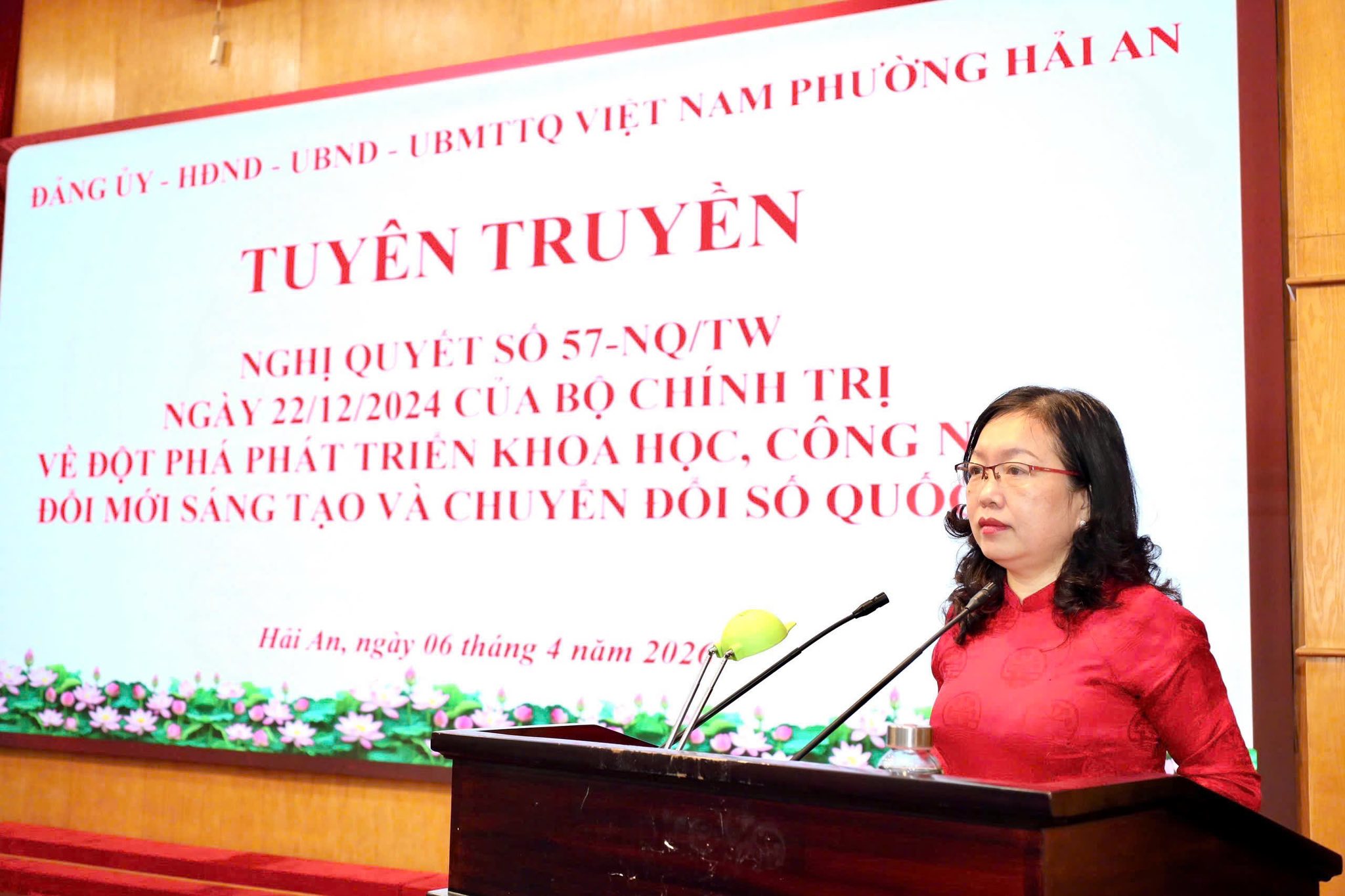 Tại buổi lễ, đại diện lãnh đạo phòng Văn hoá - Xã hội đã tuyên truyền, quán triệt nội dung về Nghị quyết số 57-NQ/TW ngày 22/12/2024 của Bộ Chính trị về đột phá phát triển khoa học, công nghệ, đổi mới sáng tạo và chuyển đổi số quốc gia; đồng thời làm rõ các văn bản chỉ đạo, nhiệm vụ trọng tâm và việc triển khai thực hiện tại các phòng, ban, đơn vị, qua đó góp phần nâng cao nhận thức, tạo sự thống nhất trong hành động của đội ngũ cán bộ, công chức, viên chức, thúc đẩy cải cách hành chính, nâng cao chất lượng phục vụ Nhân dân, hướng tới xây dựng chính quyền điện tử, chính quyền số.