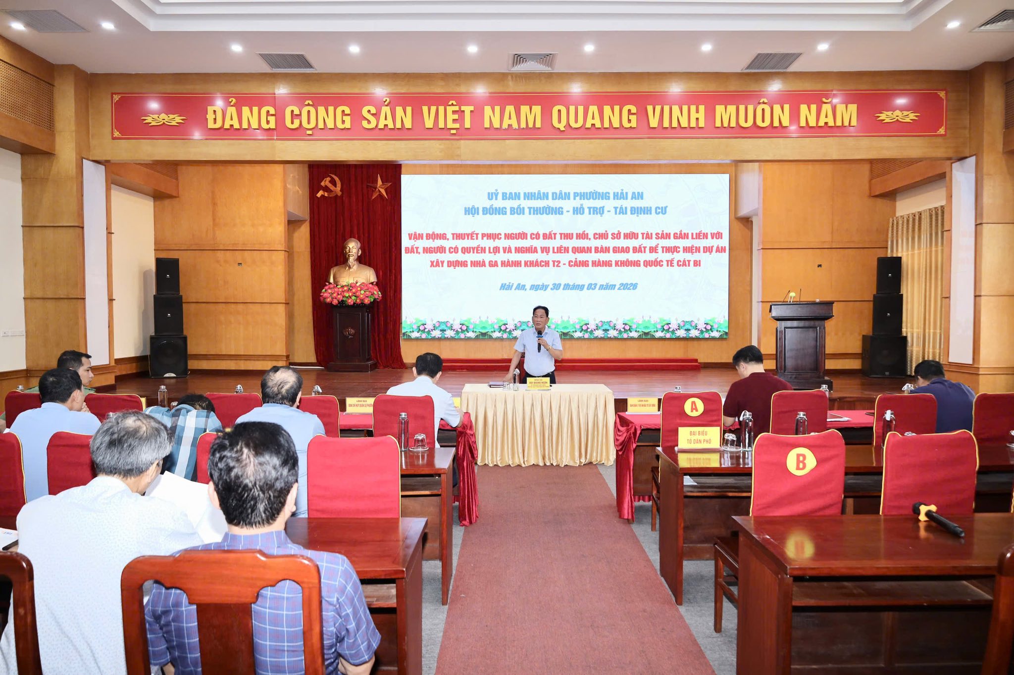 Ủy ban nhân dân phường, Hội đồng bồi thường, hỗ trợ, tái định cư phường Hải An tổ chức vận động, thuyết phục người có đất thu hồi, chủ sở hữu tài sản gắn liền với đất, người có quyền lợi và nghĩa vụ liên quan bàn giao đất để thực hiện Dự án xây dựng Nhà ga hành khách T2 - Cảng hàng không quốc tế Cát Bi tại phường Hải An