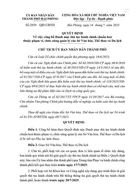 Quyết định 2830/QĐ-UBND ngày 10/7/2025 của UBND Thành phố Công bố danh mục thủ tục hành chính được sửa đổi, bổ sung lĩnh vực Tần só vô tuyến điện thuộc phạm vi chức năng quản lý của Sở Khoa hoạc và Công nghệ trên địa bàn TP Hải Phòng